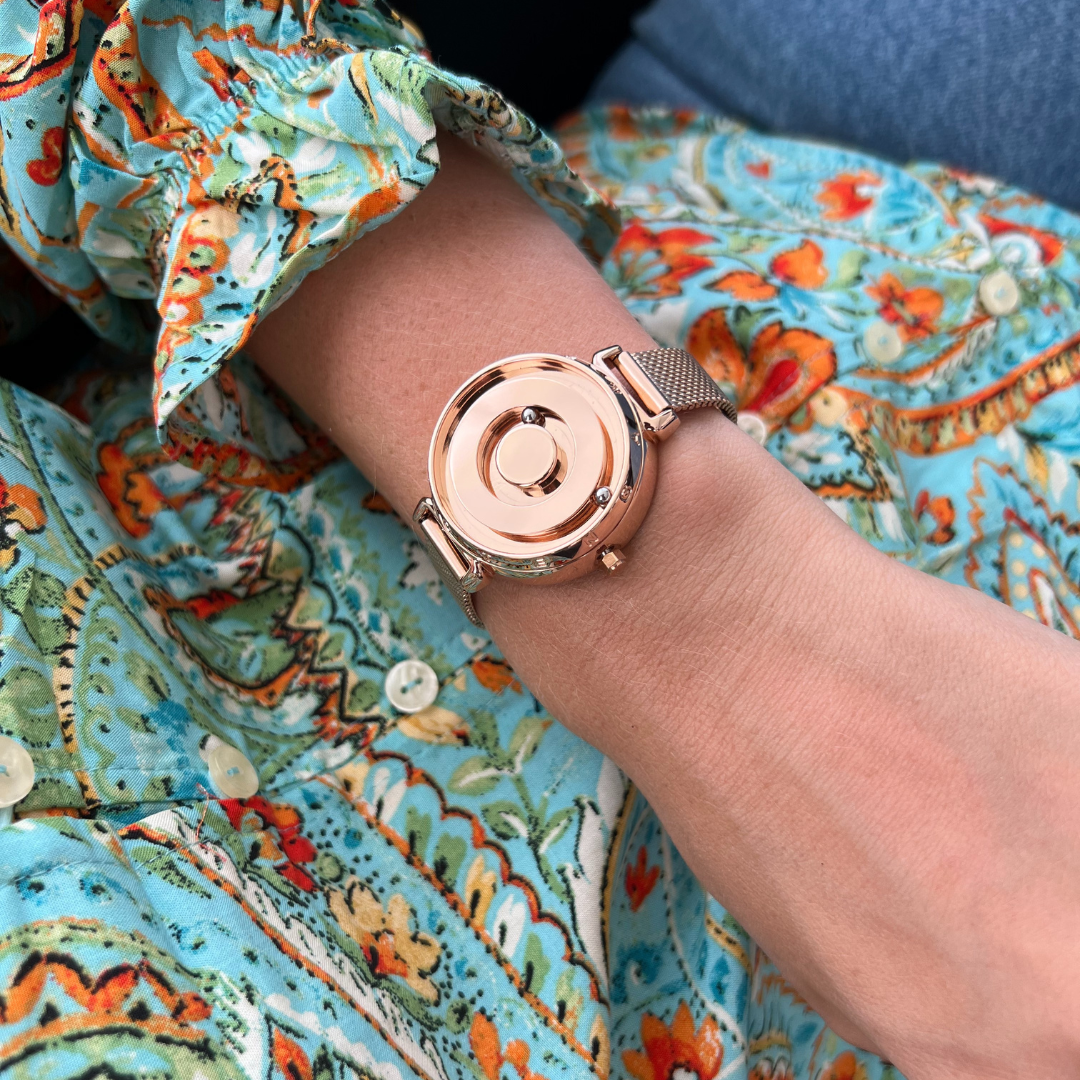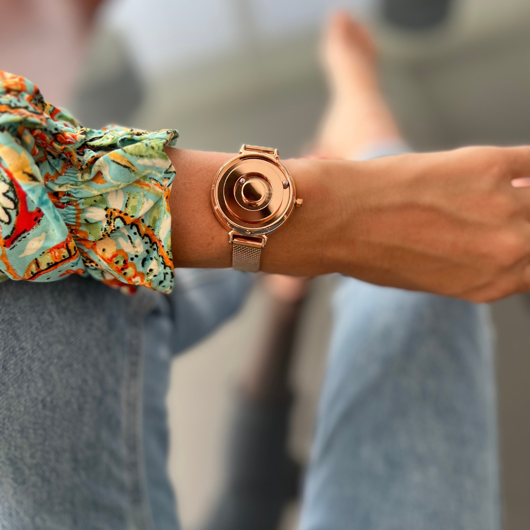 Discover unique watches to stun the world and stop people in their tracks. Inspired by the planet Venus, this watch has a tasteful minimalist and feminine design. Two magic spheres float in orbit to tell you the time. The inner sphere stands for the hour hand, and the outer sphere for the minute hand.